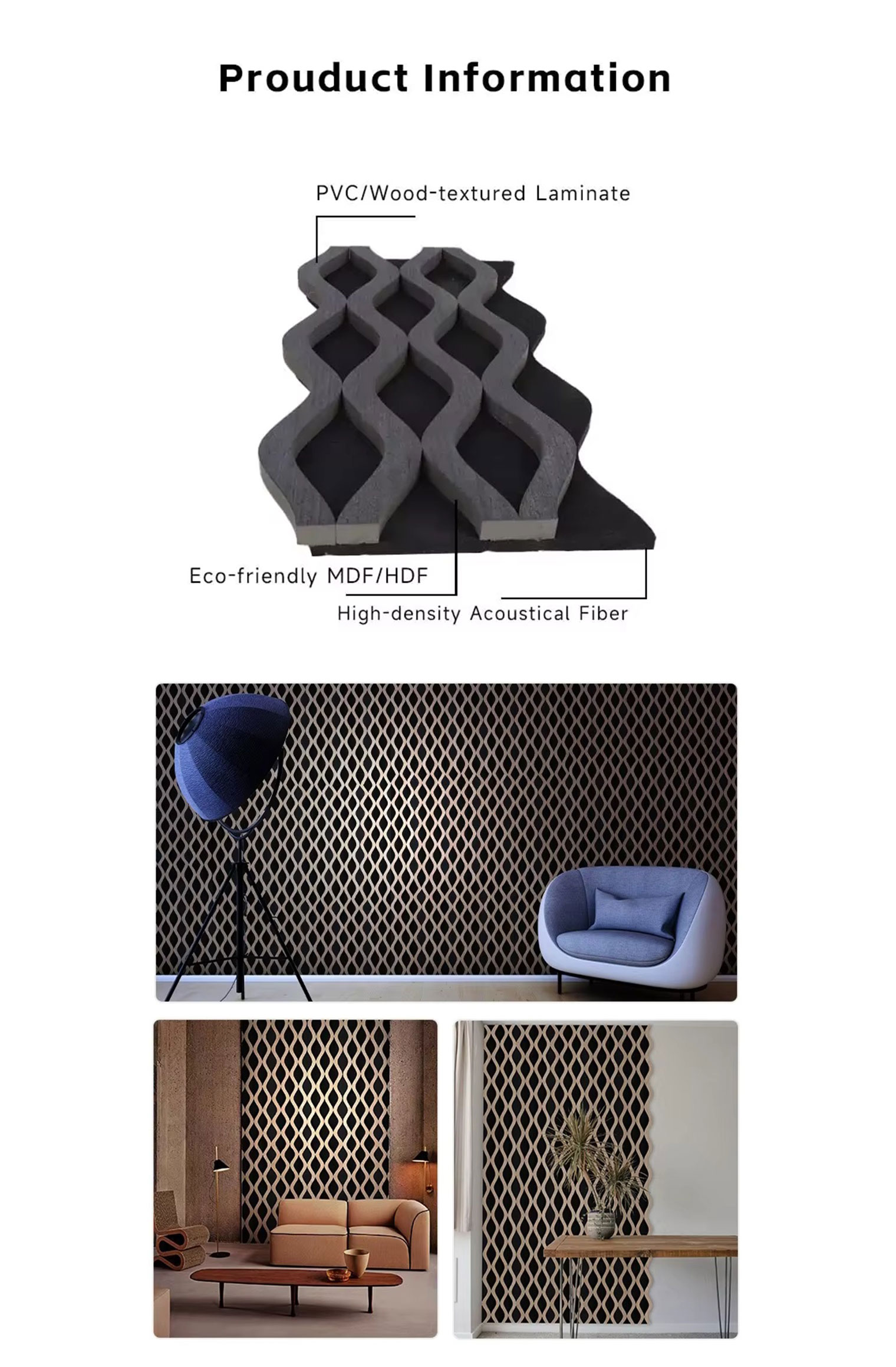 Lleve elegancia moderna y control de sonido superior a su hogar o espacio de trabajo con nuestros **Paneles de pared insonorizados de nuevo diseño**. Fabricados con MDF de alta calidad, fieltro PET ecológico y listones de madera de aspecto natural, estos paneles no solo mejoran la acústica sino que también agregan una declaración decorativa audaz a cualquier interior.
