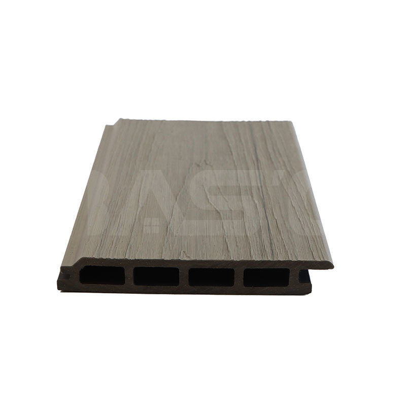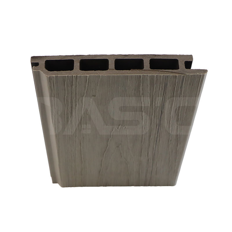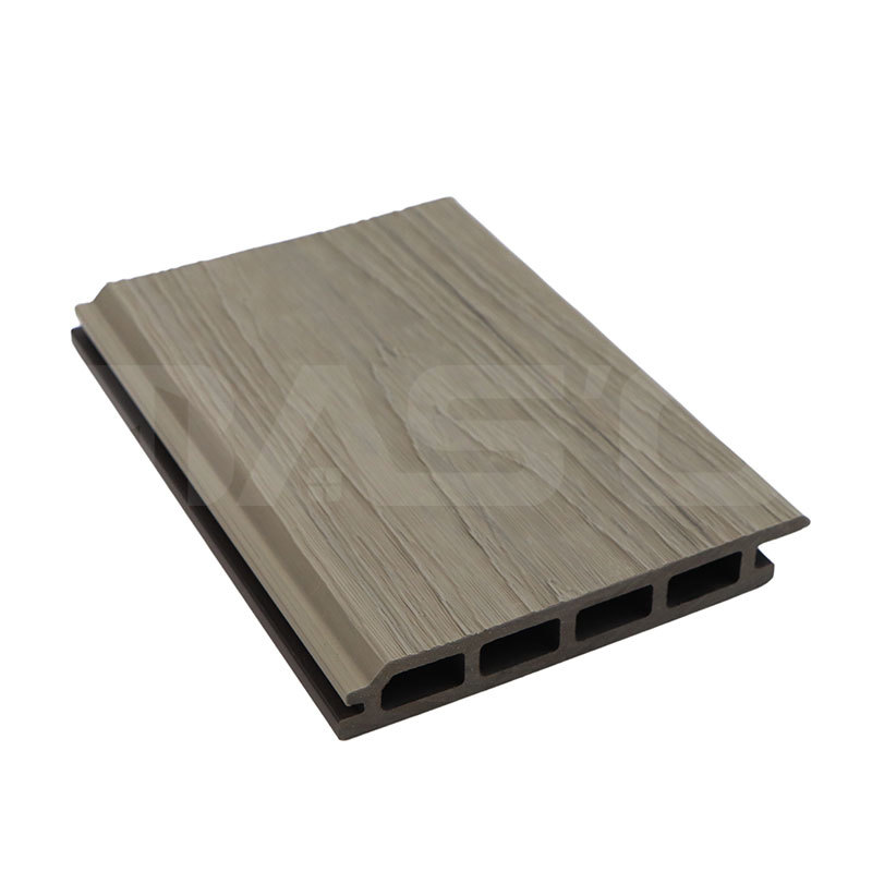 Este panel de pared compuesto de coextrusión resistente a los rayos UV y a la decoloración de 138*20 mm está hecho de 55% de fibra de madera natural y 35% de plástico HDPE reciclado, con adhesivos especiales y tecnología de coloración, que tiene textura natural y durabilidad.