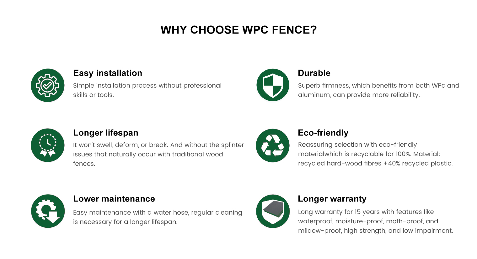 Respetuoso con el medio ambiente: fabricadas con materiales sostenibles, nuestras puertas compuestas son una opción ambientalmente responsable para sus necesidades de cercado.